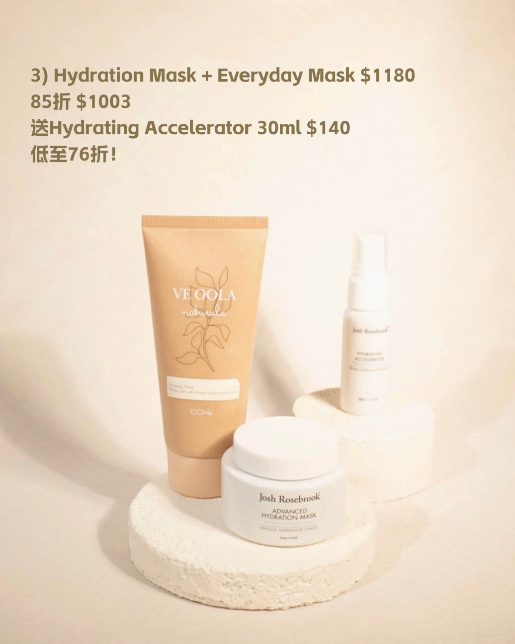 3) [85折$1003] Josh Rosebrook Hydartion Mask 50ml + Ve Oola Everyday Mask 100ml (原價$1180 共省$177)