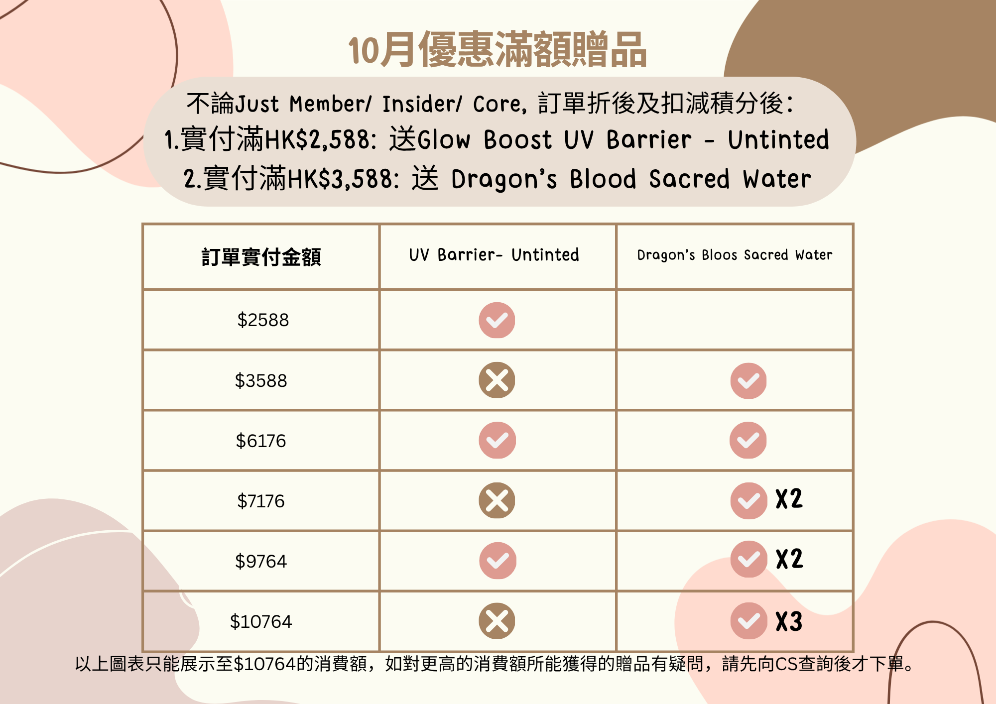 只有下單時已是Insider/Core級別的會員才能獲得此滿額贈品,如首次下單超過$1000而成為New-Insider的Just Member不能獲得此滿額贈品。