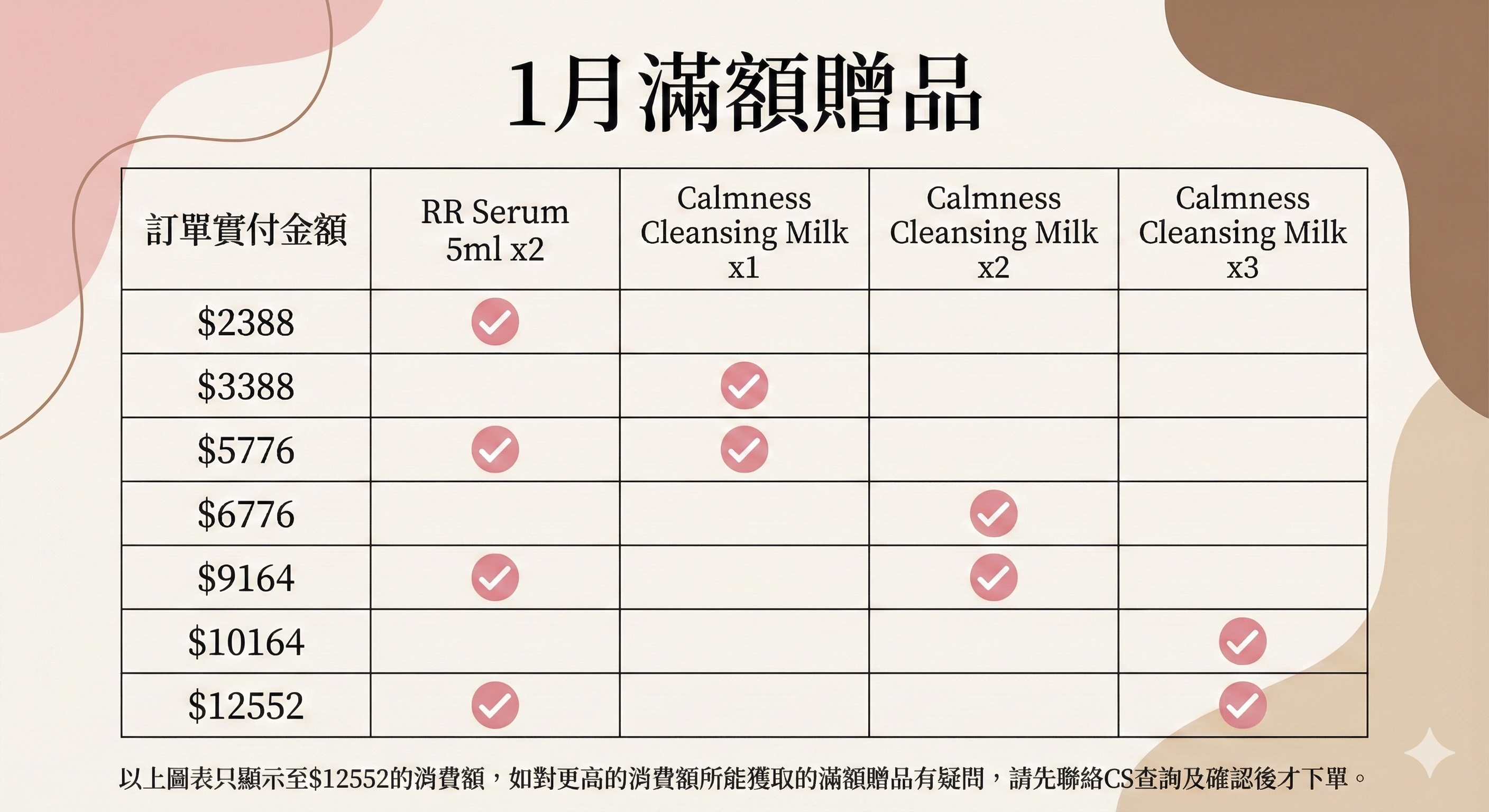 - 贈品不是疊加計算, 詳見下圖: